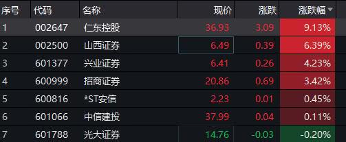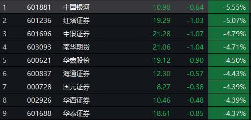 从今日盘面来看,兴业证券(8.150,0.46,5.98%)、招商证券(29.230,2.66,10.01%)等银行系券商涨幅居前,而整体板块承压明显。